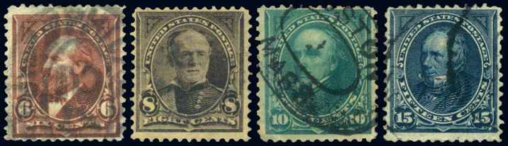 | 112-117 1¢-12¢ 1869 Pictorials, all Fine-Avg, 6¢ dingy with two small thins and 2¢, 10¢ and 12¢ with very minor creases (one each, two are corner creases) and 12¢ with blue target ccl. Attractive group cv ($850)