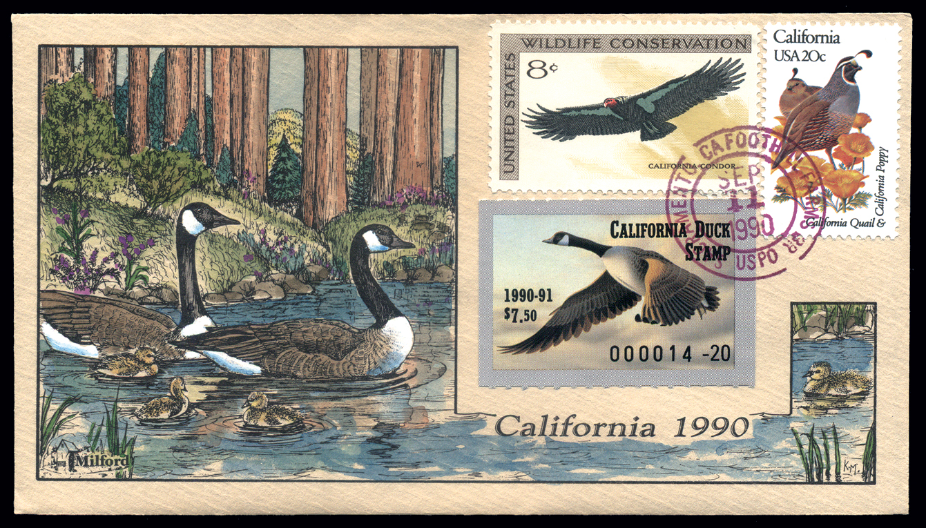 | UK1 United Kingdom 1991 First of Nation Duck Print, sba Rodger McPhail, with mint and artist signed stamps and folio, edition of 9,000, Pintails