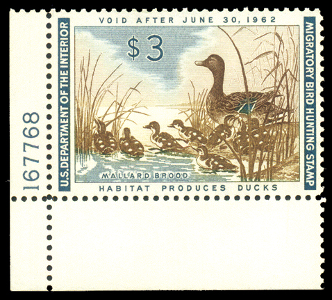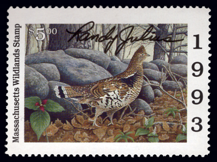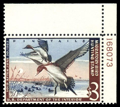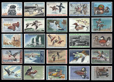 | National Wildlife Conservation Stamps in sheets and partial sheets (1,150), dates range from 1953//1962, and 1980-1991. Early issues have been separated for mounting on old album pages, by means of "Scotch" tape. The 1980 issues and on include both winter and spring sheets. All mounting done by tape or corners stuck down. Certainly a great beginning for a wildlife label collection
