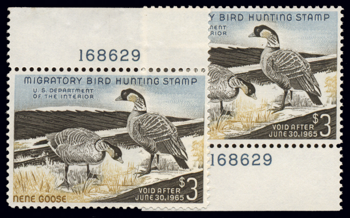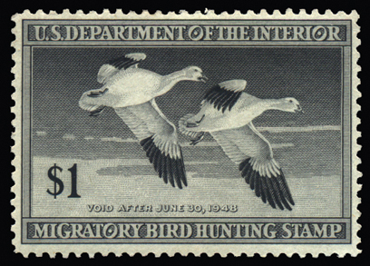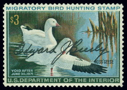 | RW39 1972 FEDERAL DUCK PRINT, FIRST EDITION, sba Arthur M. Cook (deceased), w/o stamp or folio, edition of 950, Emperor Geese cv ($2700)