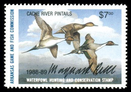 | AR2 1982 Arkansas State Duck Print, sba Maynard Reece (deceased), with mint stamp, edition of 7,440 no. 4,013, Wood Ducks