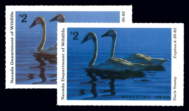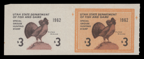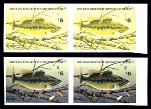 | NAW3i 1982 North American Wild Sheep Foundation, Imperforate Horizontal Proof Pair, lower right position with cut lines in a corner, slight ink smear at right, VF NH cv ($30)