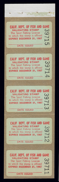 | PAT1 Pennsylvania 1956 First of State Non-Resident Trout stamp, F-VF NH, right side margin single, crease across stamp cv ($95)