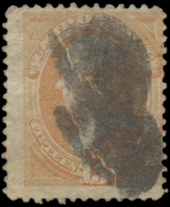 | 36 12¢ Black, Fine Used, pencil notation on back. A little chewed up at right and bottom right. Definitely a space filler cv ($325)